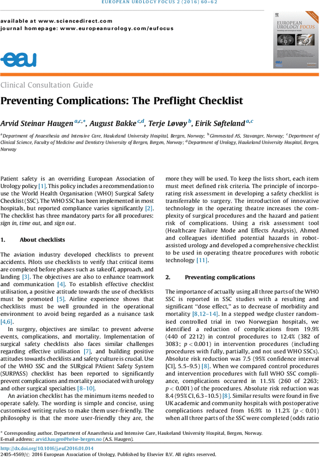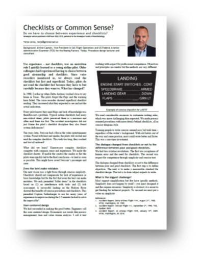 Do we have to choose between experience and checklists? Periodical for the Norwegian Society of Anesthesiology.