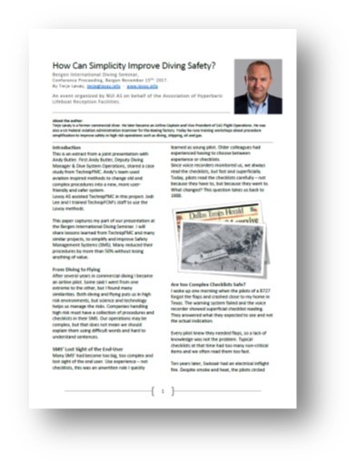 Bergen International Diving Seminar, Conference Proceeding, Bergen November 15th, 2017.